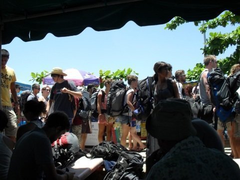 Le matin au port, il y avait un attroupement de touristes qui attendaient leurs bateaux respectifs pour quitter Koh Phangan. Les billets s’achètent généralement en agence de voyage, nous avions eu les notre à 250 bahts chacun dans une agence pas très loin du port.